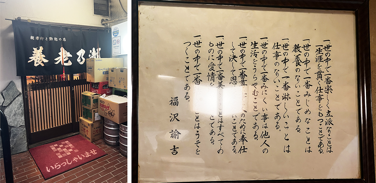 店内に掛かる福沢諭吉先生の「世の中で一番の‥‥」の言葉はほろ酔い気分の胸に刺さり、こういった店内の「設」もしょっぺ店たるところ。魅力満点のお店、是非50年60年と継続していって欲しいお店である。