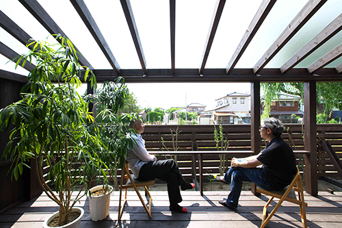 ¼ì‚ð‰î‚µ‚ÄŠp“cŽR‚ð–]‚ß‚éƒEƒbƒhƒfƒbƒL‚Í’†‚ÆŠO‚ðŒq‚®’†ŠÔ—̈æB