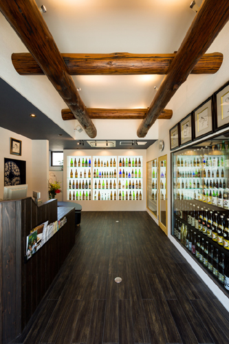 井桁で組まれた梁はかつての店舗で使われていた物を移築